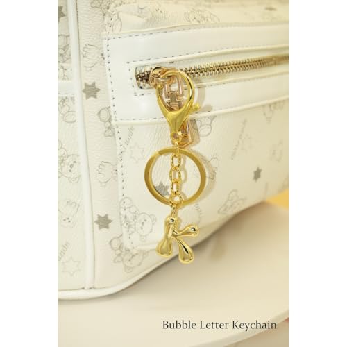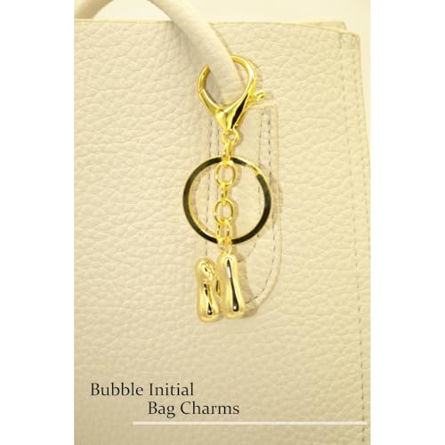 LUDKCCIR - ميدالية مفاتيح بحروف بتصميم فقاعي للنساء، دلايات شنط للأحرف الأولى، مخصصة للشنط وشنط اليد مع اكسسوارات بطلاء ذهبي عيار 18 من لودكسير