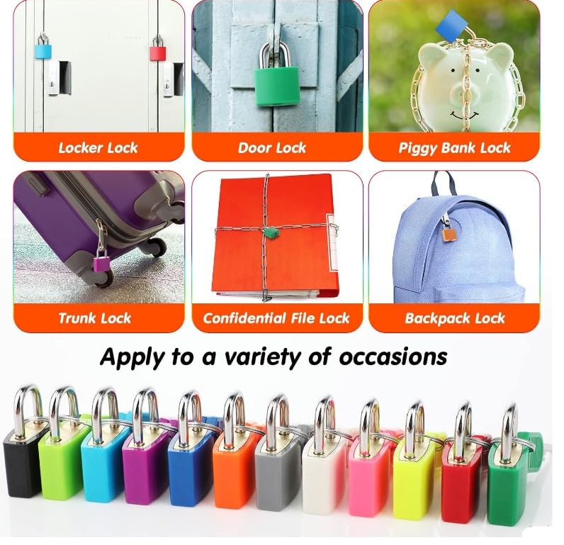 - أقفال شنط سفر مع مفاتيح، أقفال معدنية متعددة الألوان، أقفال صغيرة ب |2مفتاح نفس لون القفل| مناسبة لشنط السفر وخزانه الجيم و صناديق التخزين ولعبة مطابقة الفصول الدراسية والمزيد