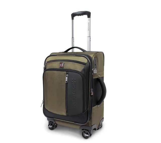 Generic - شنطة سفر سويس تك 20 انش/ اسود مع لون اخضر زيتوني