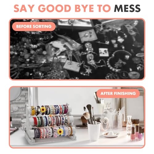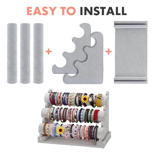 - 3 Tiers Bracelet Display Stand: with 3 tiers of work rods total, each rod can hang 10 to 30 bracelets or necklaces, one bracelet holder can even replace a drawer, and more beautiful and convenient.