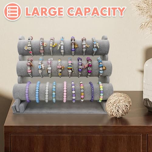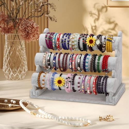 LuiceABC - LuiceABC Bracelet Display Stand, 3 Tiers Velvet Soft T Bar Bracelet Holder Jewelry Watch Tower Organizer