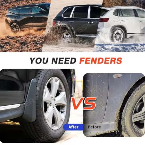 - Constructed from premium-grade ABS plastic, these mud flaps are wear-resistant, impact-resistant, and built to last.Whether you're facing muddy trails, snowy roads, or gravel-covered highways, they serve as a protective barrier between your car's body and road debris, preventing costly chips, scratches, and rust on your fenders and side panels