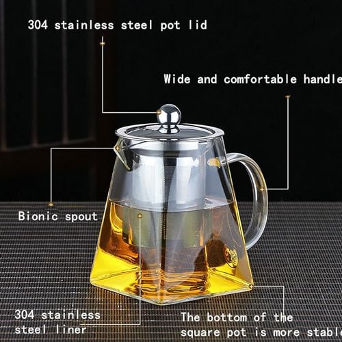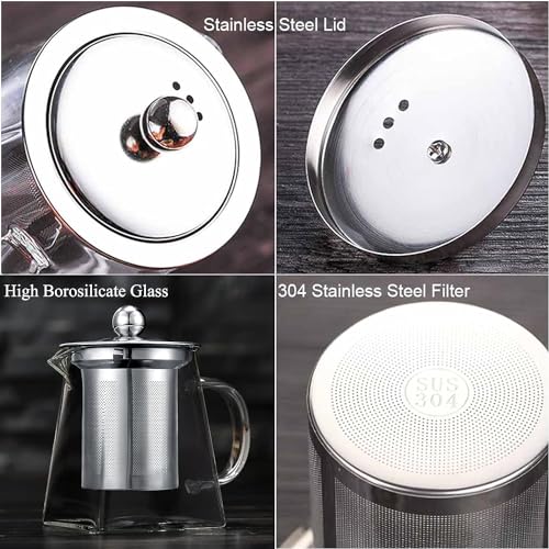 Luksyol - ابريق شاي زجاجي كازادورا من لوكسيول - ابريق شاي من زجاج البوروسيليكات مع مصفاة مصفاة لاوراق الشاي السائبة (دائرية، 950 مل)