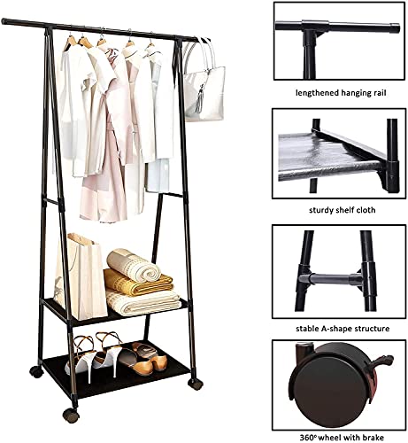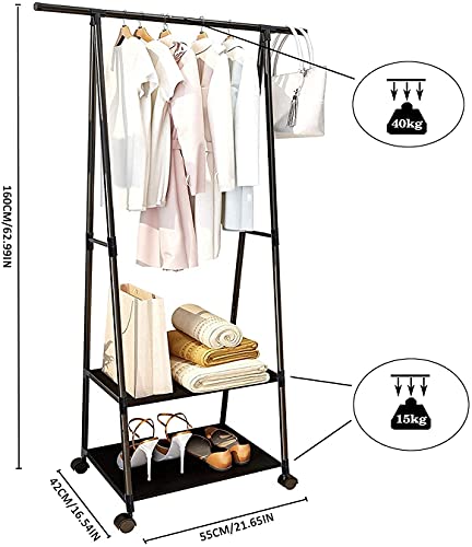 Lukzer - Lukzer A-Shape MGR-010/Black Garment Rack | Multipurpose Coat Hanger, Clothes Organizer with 2 Bottom Shelves, Space-Saving Storage, Stylish Home Decor, Clothing Display (160 x 55 x 42cm)