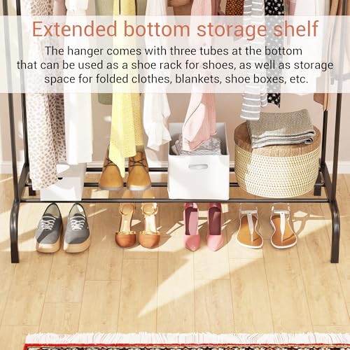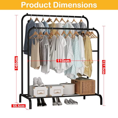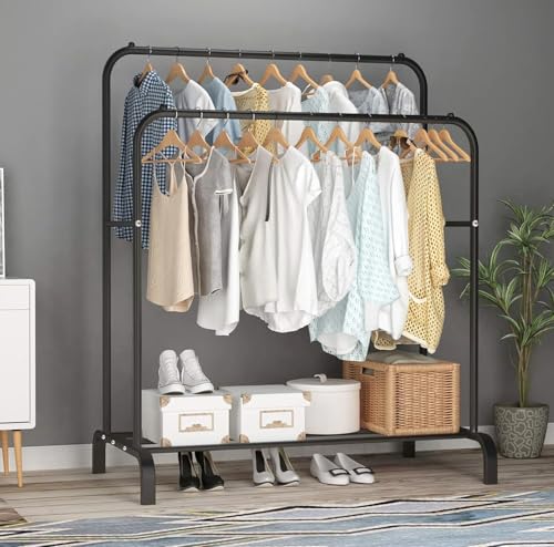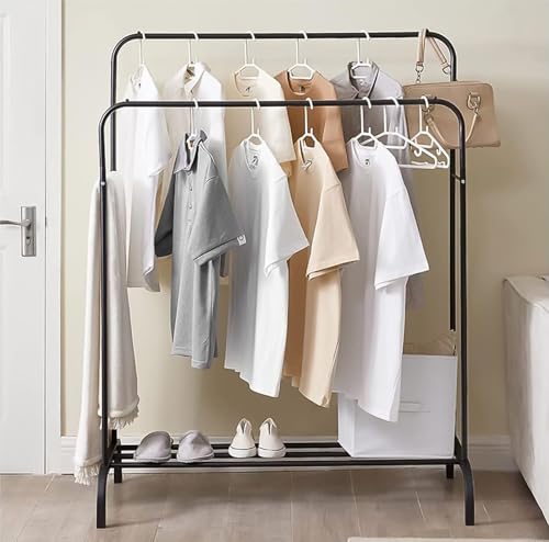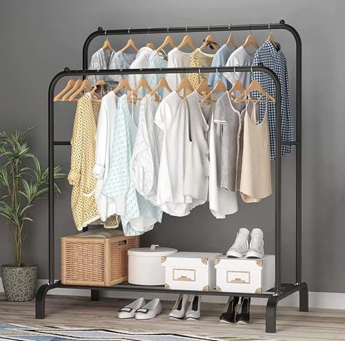 Lukzer - لوكزر رف ملابس مزدوج متعدد الاغراض مع سفلي واحد لتعليق المعاطف والجاكيتات وقضيب قماشي شديد التحمل للمنزل وغرفة النوم ومنظم تخزين فريد من نوعه المعدن اسود - 150 × 110 40 سم .