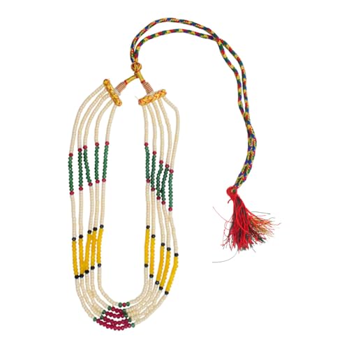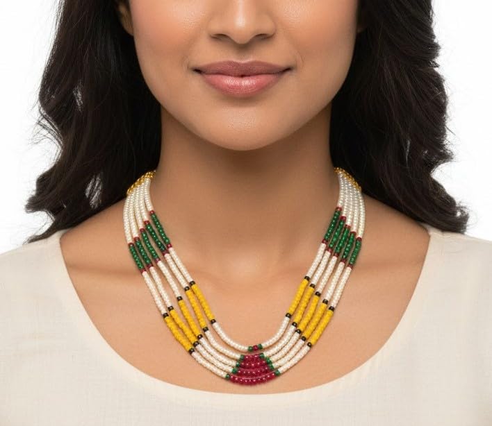 Indian Stones MA - عقد هندي حريمي فاخر من اللولي مرصع بأحجار طبيعية كريمة من الزمرد والياقوت والكواردز الاصفر والزفير - متعدد الالوان