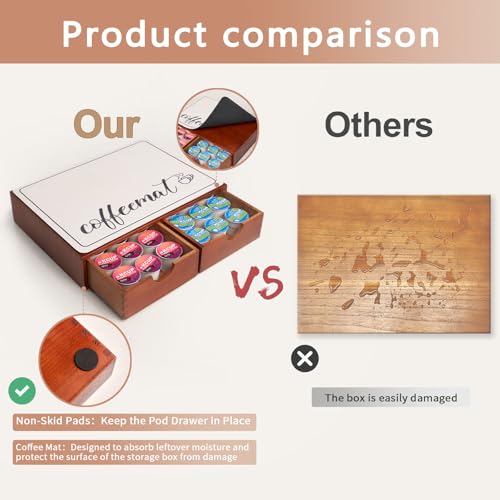 - 【Comes With Coffee Mat And Non-Skid Pads】The Absorbent Coffee Mat Protects The Storage Box Surface From Scratches, While The Non-Skid Pads On The Bottom Keep The Box Securely In Place. These Features Make It Perfect For Use Under A Coffee Machine