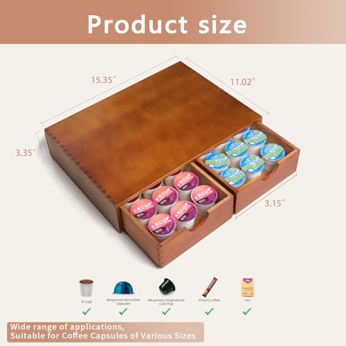 - 【Sturdy And Durable】Our K Cup Storage Box Is Made Of High Quality Natural Pine Wood With Very Beautiful Wood Grain, Looks Very High-Grade, After We Varnish The Box Layer By Layer The Coffee Colour Is Full And Has A Certain Degree Of Gloss, Water Dripping Onto The Surface Of The Box Is Unable To Penetrate Into The Wood, Easy To Clean.