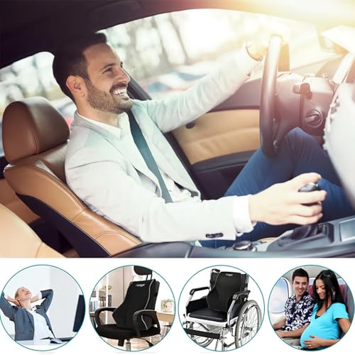MLADEN - وسادة دعم اسفل الظهر للسيارة، وسادة مقعد السيارة من الميموري فوم الناعم لتخفيف الام الظهر، وسادة دعم الظهر لمقعد السيارة والمكتب، مع قماش جيد التهوية