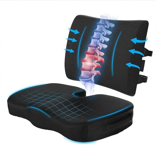 - ❤【100% Memory Foam Car Seat Cushion】Seat cushion for office chair and lumbar support pillow are made of 100% pure high-density premium durable memory foam which are NO ODOR and NEVER GO FLAT! The office chair cushion not only provide support hardness, but also give you with more soft comfort than donut pillow. Also can be used to improve bad posture and relieve leg pain while driving or sitting for long periods, enhancing your comfort while retaining its density.