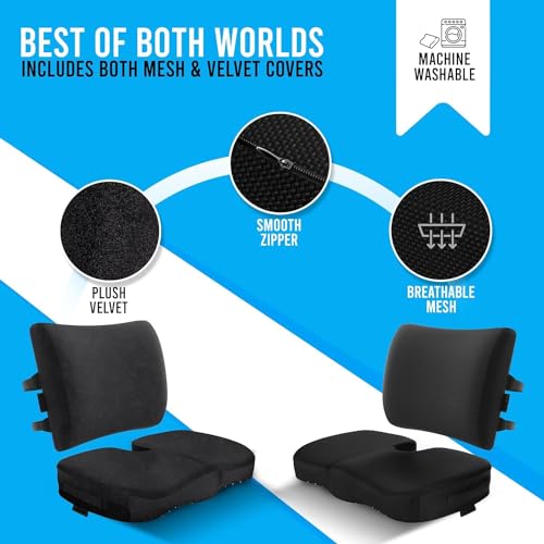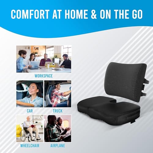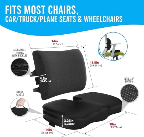 - ❤【Works with Any Chair】Our Chair Pillow features a non-slip, rubber bottom to ensure it stay firmly positioned in a seat. Two Adjustable Straps keeps the back support cushion in place and prevent the lumbar pillow from sliding down. So the combo is suitable for office chair, computer chair, gaming chair, car seat, recliner, any home chair or a seat on bus, airplane or train. Our butt cushion is perfect for drivers, teachers, students, people with wheelchair, pregnant women, office workers, etc.