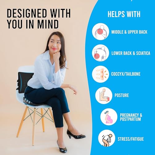- ❤【Coccyx Seat Cushion】Our tailbone pain relief cushion adopt U-shaped ergonomic designed by alleviating pressure on the coccyx/tailbone and relieving Sciatic Nerve Pain or Sciatica, Low Back, Lumbar, Tailbone, Prostate, Hip, Piriformis, Spine, Leg Pain, Backaches, Hemorrhoids, and post surgery or pregnancy pain relief. This sciatica pillow for sitting curved design minimizes pressure by cradling your bottom and providing evenly distributed support. Best back support pillow and tailbone cushion.