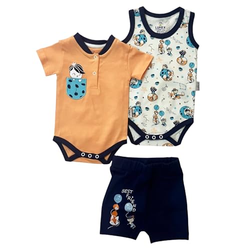 Lumex - Lumex Boys Set Of 3 Pieces Half Sleeves,Sleeveless Bodysuit&Short Printed Shapes Set Of 3 Pieces Half Sleeves,Sleeveless Bodysuit&Short (pack of 1)