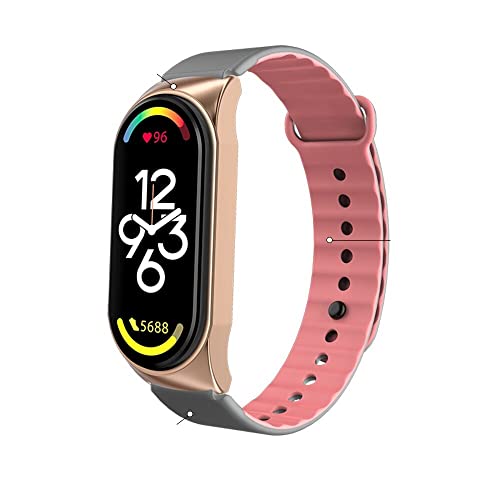 Generic - Lumi Rubber Silicone Strap with Metal Frame Band 7 Belt for XiaoMi Band 7 (Grey and Pink)