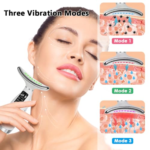 - 7 LED Color Mode and 3 Vibration Intensity: This red light massager has seven different colors of LEDs, corresponding to different modes and different benefits. This facial device can effectively help you improve the skin on your face and neck, and it can also help with double chins. Each mode has 3 levels of adjustable vibration intensity. You can choose the level that suits you best.