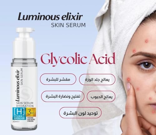 Generic - مصل لومينوس - 3 × 1 - تبييض - الندوب - مرطب - مزيل البقع الصبغية - العناية بالوجه ضد البقع الصبغية - لعلاج البقع العمرية لعلاج الكلف للوجه - 30 مل - من جيه اند جيه فارما، حساس