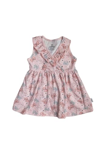 Generic - Lumpex Baby Girl's Butterfly Print Dress, Pink, Sleeveless, Ruffle V-Neck