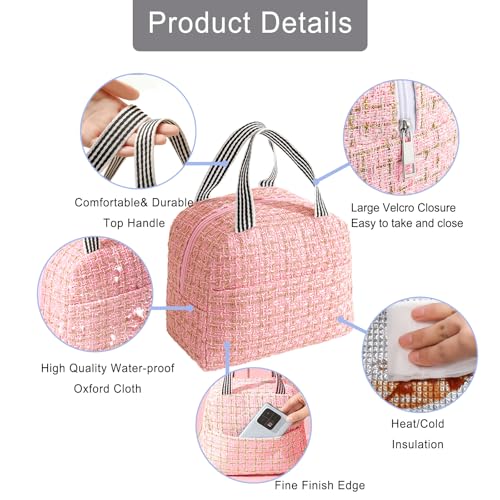 MengCat - Lunch Bags for Women Insulated Lunch Bags Adults Cooler Bag Water-Resistant Thermal Leak-Proof Lunch Organizer for Children Girls Men Work Picnic Pink