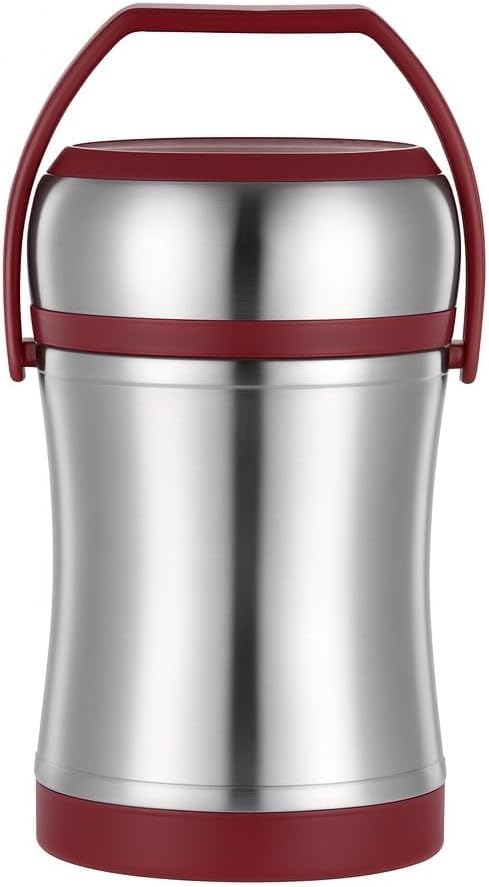 Generic - لانش بوكس سعة 1.6 لتر - وعاء طهي معزول بتفريغ الهواء من الستانلس ستيل، حاوية تخزين طعام مزدوجة الجدار مع حامل محكم للاطعمة الساخنة والباردة/السوائل، مثالية للسفر والنزهات والعمل، HH-50 (احمر)