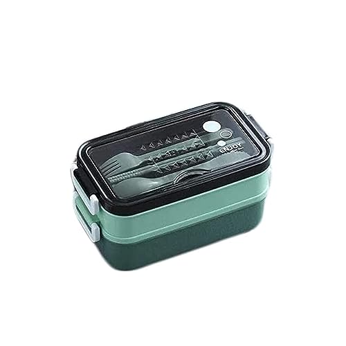 Generic - لانش بوكس لك ولاطفالك P5. بلاستيك صحي نقي 3 ادوار بحواف دائرية مع معلقة وشوكة ومشابك مضادة للانسكاب غطاء شفاف وحامل موبايل اخضر