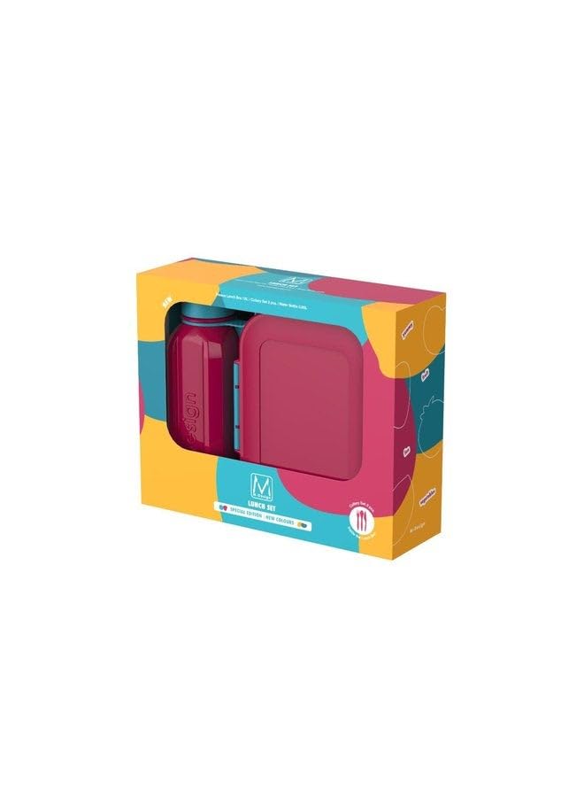 generic - Lunch Box Set + Water Bottle 500 milliliter -Fuchsia/turquoise