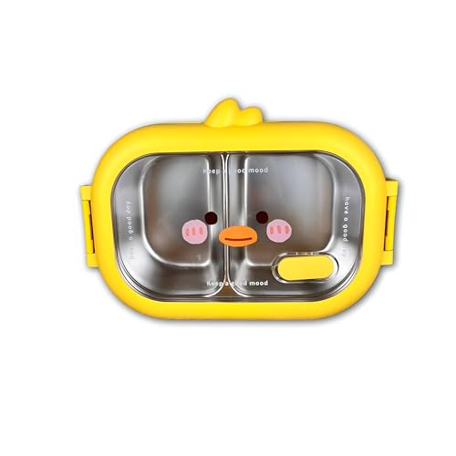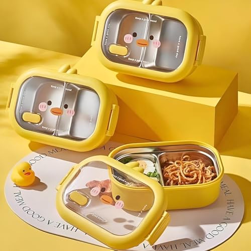 Generic - لانش بوكس واسع ومقسم من الفولاذ المقاوم للصدأ مع غطاء محكم الإغلاق، بطبعات بطة رائعة، للحفاظ على نضارة الطعام وتنظيمه لساعات