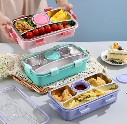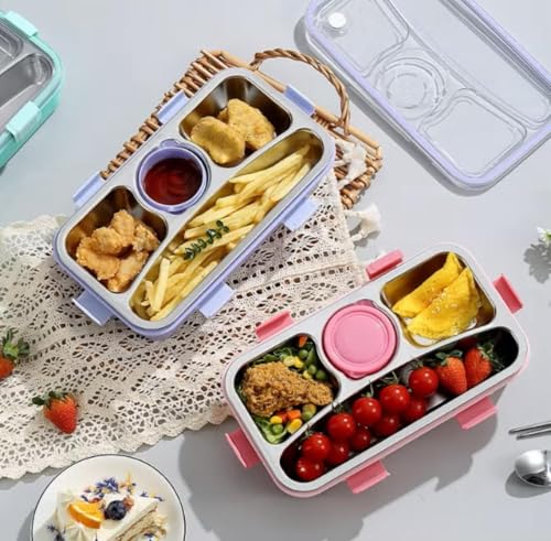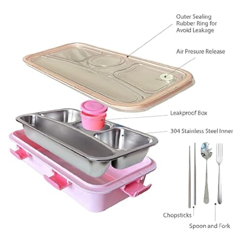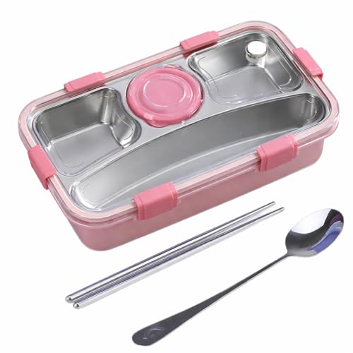 Generic - صندوق غداء مع مساحات تخزين من الستانلس ستيل - صندوق بينتو مانع للتسرب مع ملعقة وعيدان تناول الطعام (بينك)