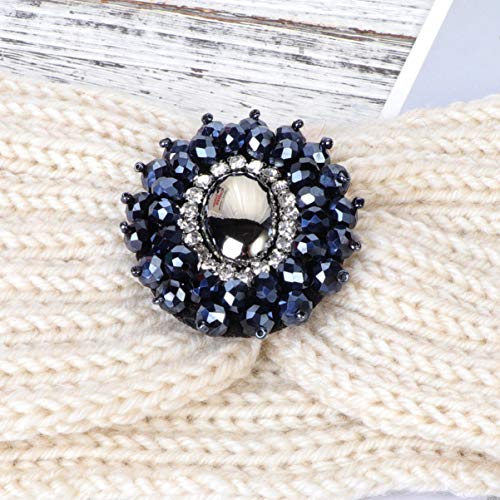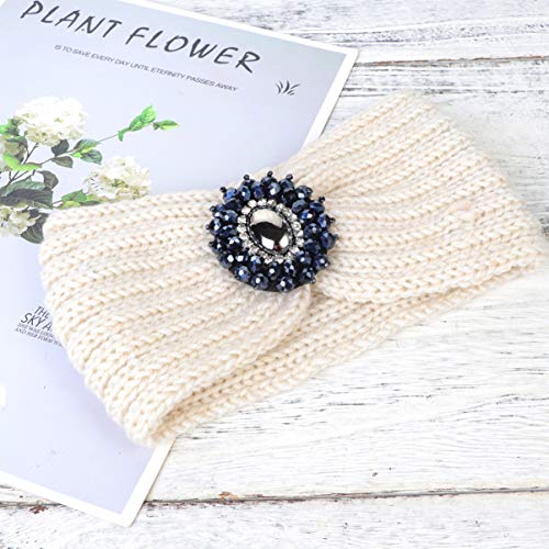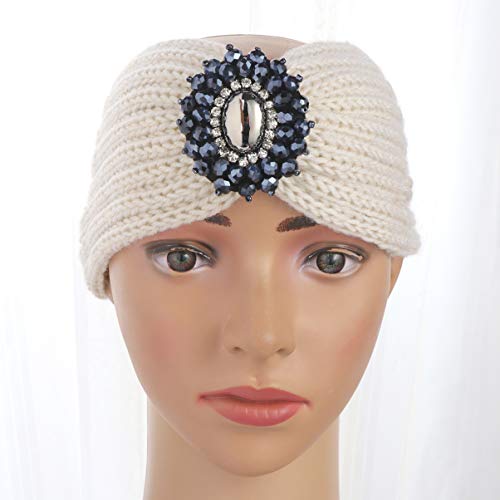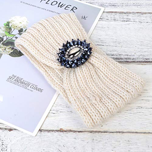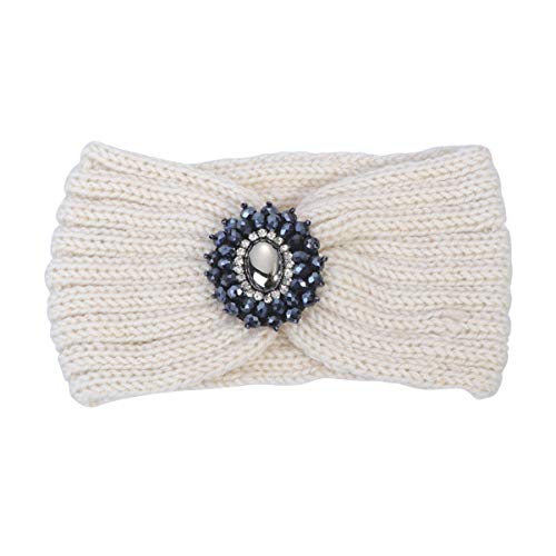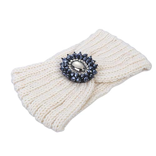 Lurrose - Lurrose Woman Knitted Headbands Wide Hairband Winter Warm Headband with Rhinestone Ear Protector Headwrap for Girls (White)