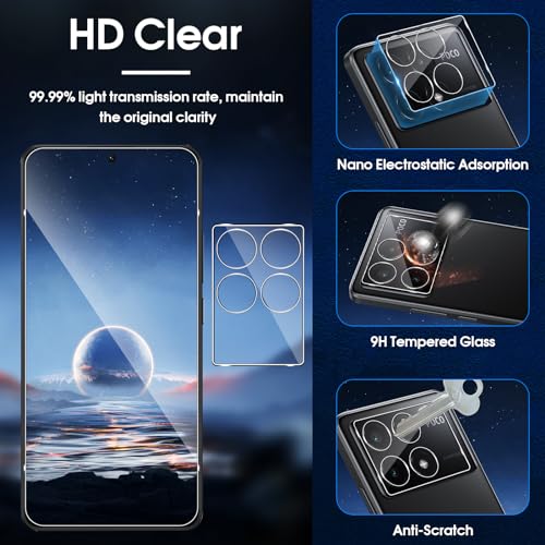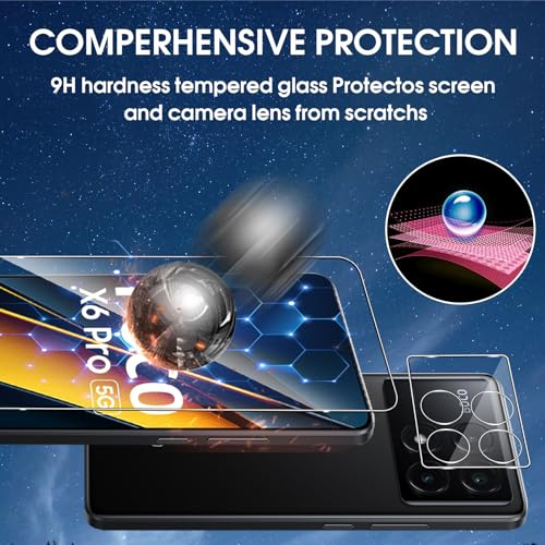 - Compatible models: equipped with 2.5D precision cutting technology, it fits perfectly on the screen of the Xiaomi POCO X6 Pro, the screen and lens protector is made of high-quality hardened protective film to maximise the protection of the phone