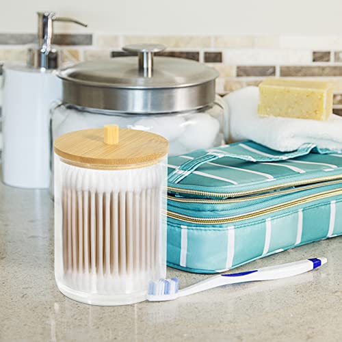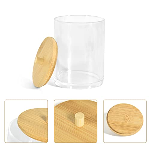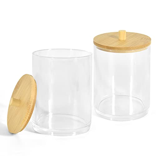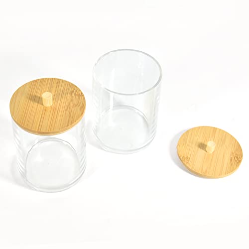 LUUFAN - حامل أعواد قطنية بغطاء خشب من لوفان، موزع كرات قطنية، منظم مستحضرات تجميل للحمام، برطمان تخزين شكل Q لأعواد القطن، منظم مكتب من الأكريليك الشفاف (حامل دائري من قطعتين)