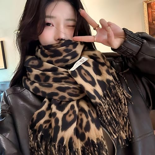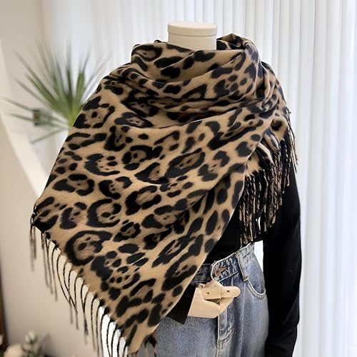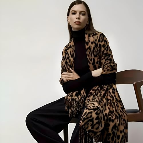 Generic - Luxe Leopard Wrap - Handcrafted pashmina shawl in brown and beige leopard print, with delicate fringe, lightweight yet warm, perfect for layering, travel, and evening outings.