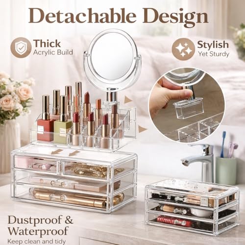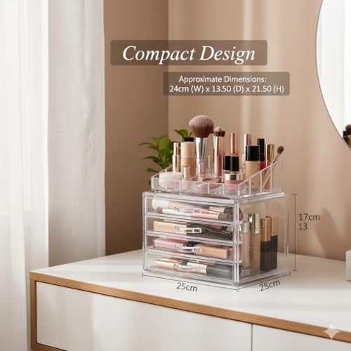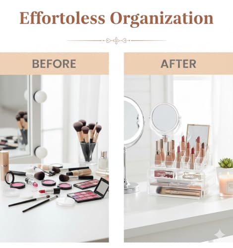 - 4️⃣ 📦 Space-Saving Vertical Layout Compact footprint with maximum capacity—perfect for small vanities, bedrooms, bathrooms, dorms & makeup stations.