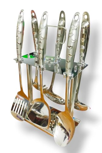 • STYLISH DESIGN: Beautiful silver-finished utensils with decorative heart-shaped indentations along the handles for an elegant kitchen aesthetic