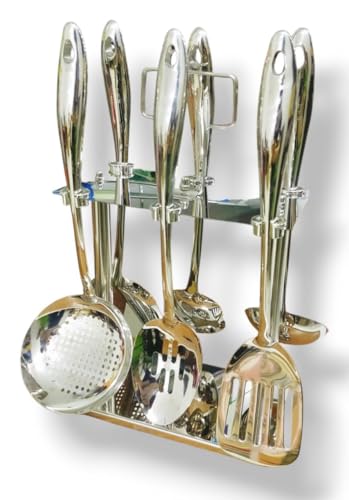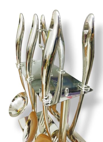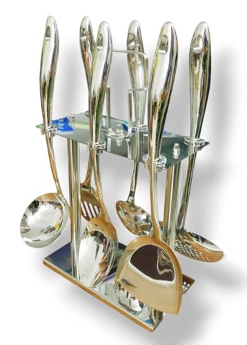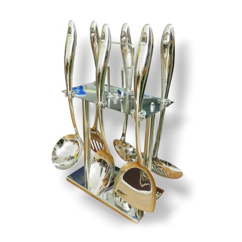 - PREMIUM SET: Complete 6-piece stainless steel kitchen utensil set includes essential cooking tools with a matching stand for organised storage