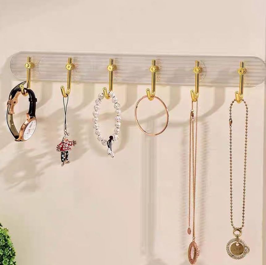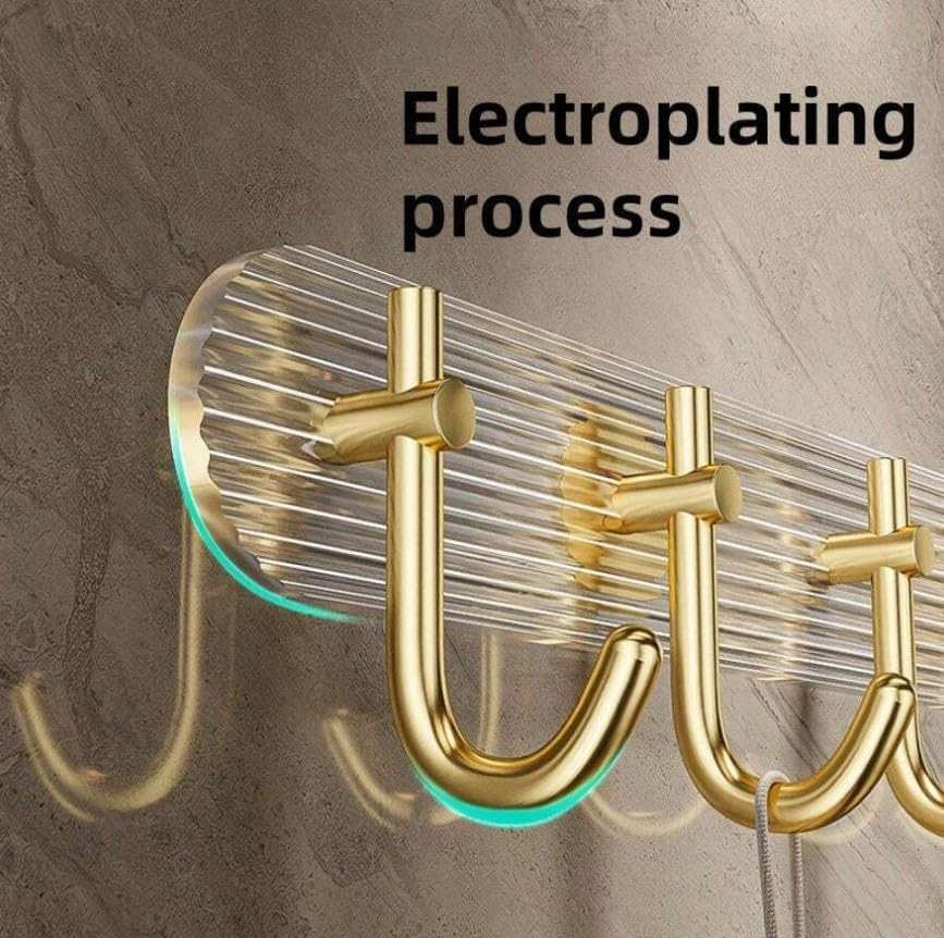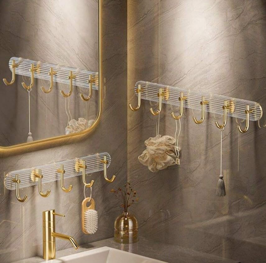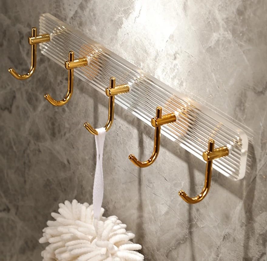 - PREMIUM DESIGN: Elegant acrylic wall-mounted hook rack featuring 6 luxurious gold-finished hooks and a clear ribbed backplate for sophisticated bathroom or entryway organisation