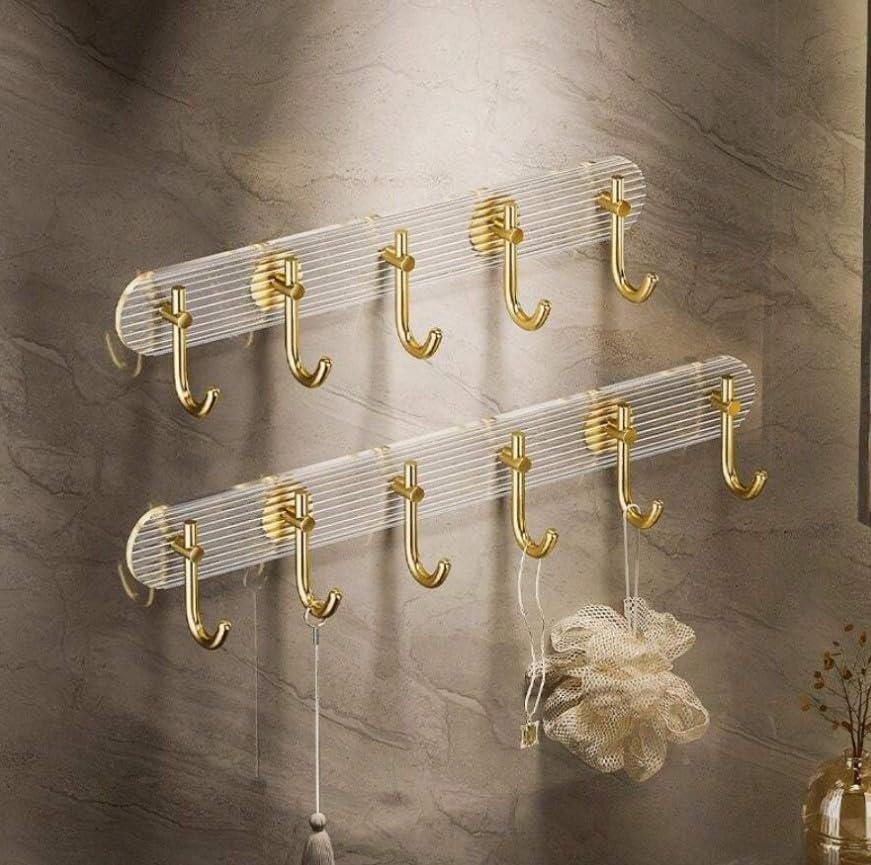 Generic - Luxury Acrylic Wall Hook Rack with Gold Hooks, 46cm x 4.5cm, 6 Hooks, Clear and Gold