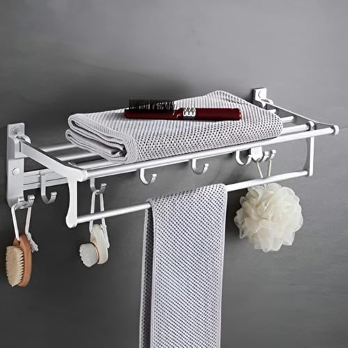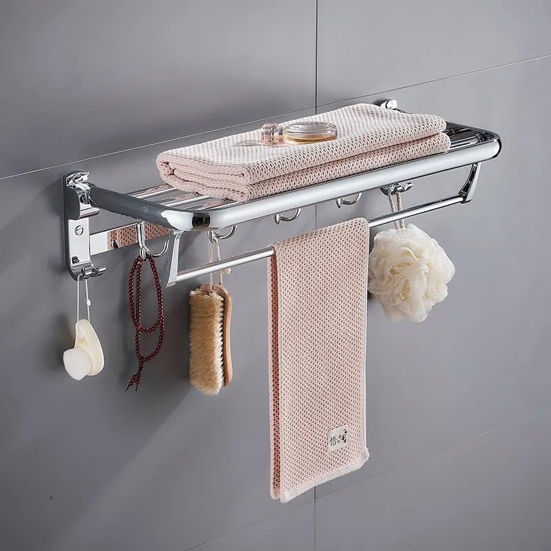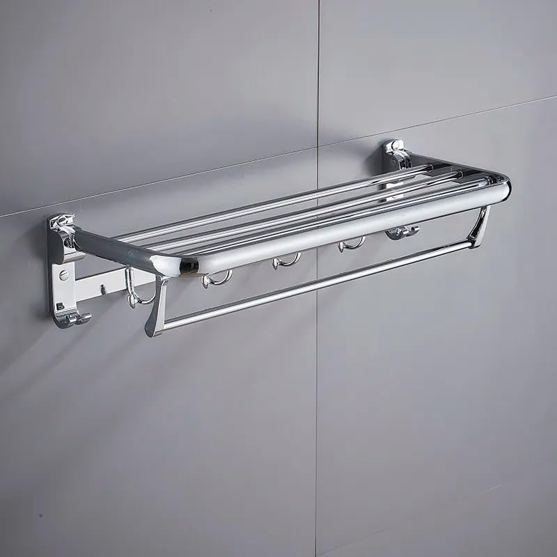 Generic - Luxury Bathroom Accessories Set - Customized and Shape (Folding Towel, 304 Stainless Steel Wall Mounted Bathroom Shelves (Size:60cm Length)-Silver)