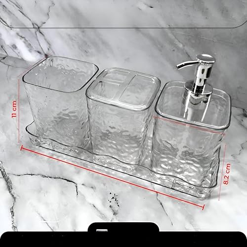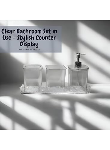 Generic - مجموعة حمام اكريليك يشمل موزع صابون، حامل فرش أسنان، حامل اكسسوارات شخصية، ورف اكريليك لأجواء منزلية أنيقة طقم من أربع قطع