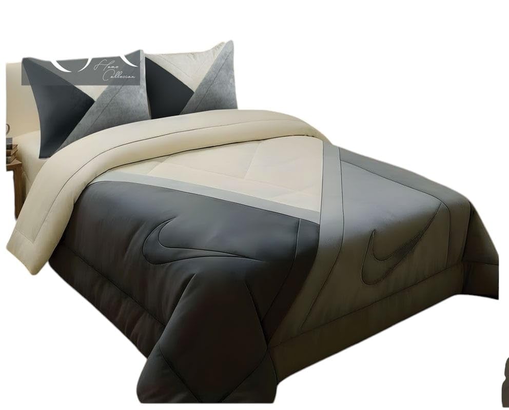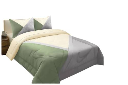 Generic - Luxury Bedding Comforter with 2 Pillow Shams, Modern Design, Cream, Green and Grey, Soft Velvet, 2026, Full Bedding Set