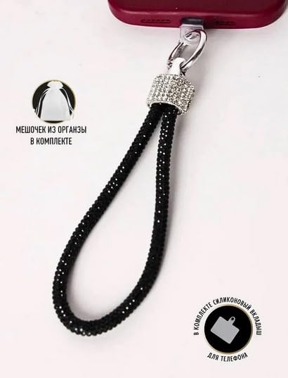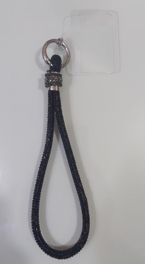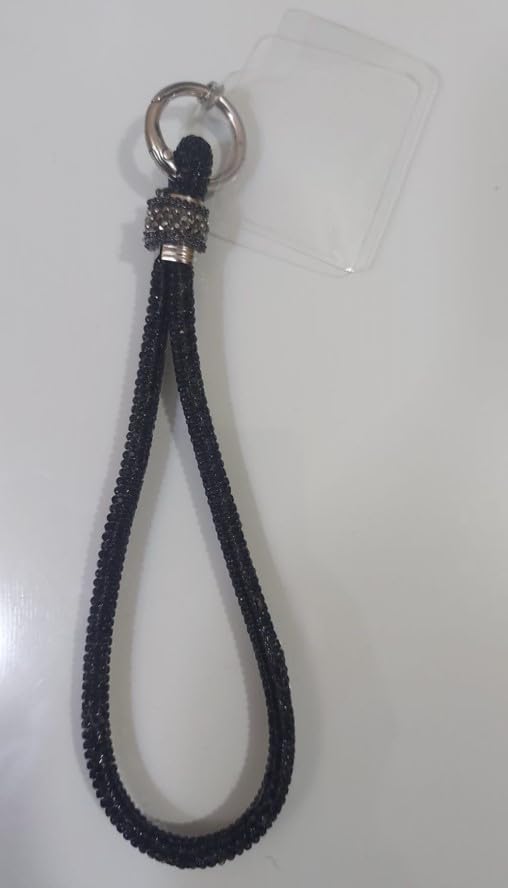 Generic - Luxury Bling Crystal Key Chain Wrist Lanyard (Black/Silver) - Stylish and Stylish Accessory for Keys, Phones and Bags