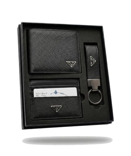 - مجموعة كاملة من 3 قطع: تتضمن محفظة كلاسيكية ثنائية الطي وحامل بطاقات نحيف بسيط وسلسلة مفاتيح جلدية شديدة التحمل للحصول على مظهر متناسق تمامًا.