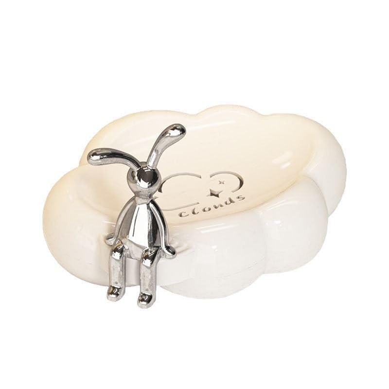 Generic - صبانة سي ان مع مجسم أرنب فضي لامع صبانة من الراتنج للحمام وأسطح المطابخ تصميم تصريف أنيق لقطع الصابون والإسفنج، أبيض، 1 قطعة
