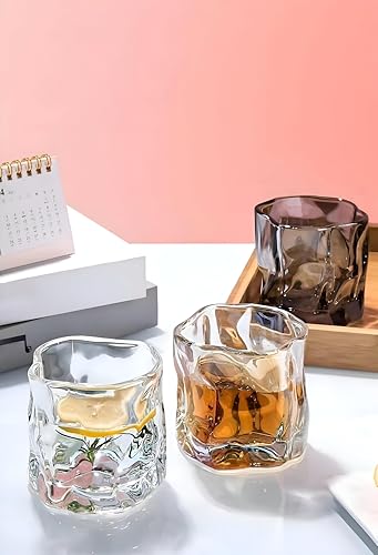 - يتميز هذا الكوب الزجاجي الكريستالي بتصميم غير تقليدي وغير منتظم وقابل للطي يعزز التهوية أثناء الصب والدوامة، مما يوفر تجربة تذوق محسنة وقبضة مريحة بسبب سطحه المزخرف، وهو مناسب لكل من الرجال والنساء.