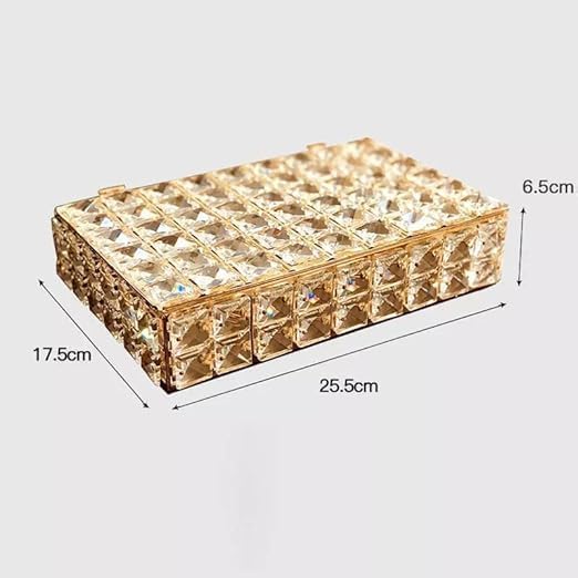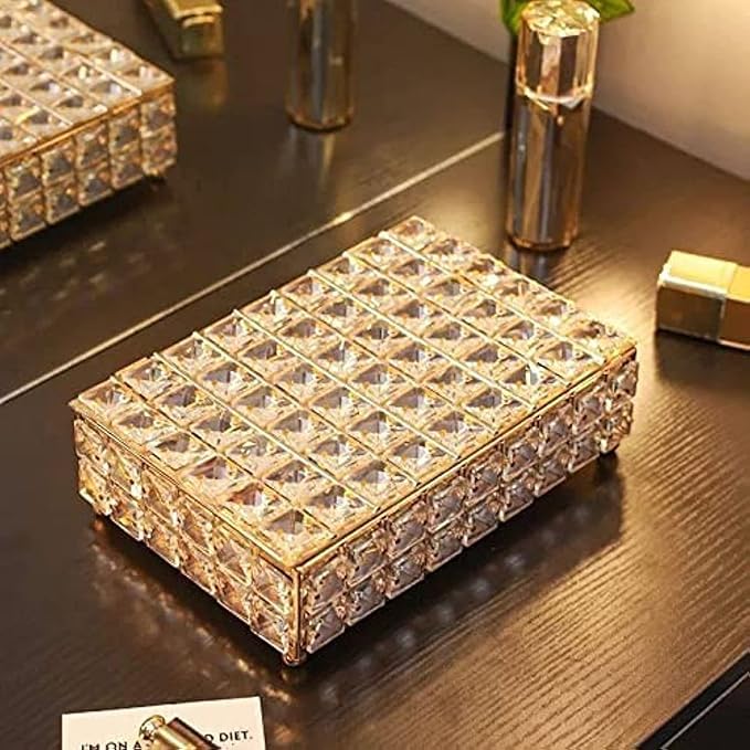 - ✨ تصميم فاخر وفريد من نوعه: يأتي الصندوق بهيكل كريستالي شفاف مزين بفصوص براقة تمنحه مظهرًا راقيًا يخطف الأنظار. تصميمه المتناسق يعكس الذوق الرفيع ويضفي لمسة فاخرة على ديكور منزلك أو غرفة ملابسك أو طاولة زينتك.