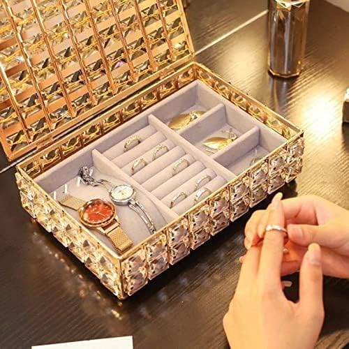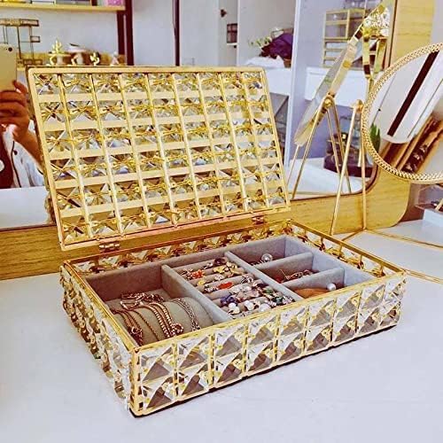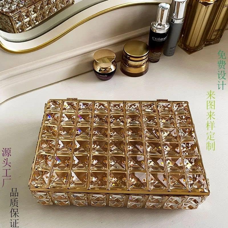 Generic - "صندوق كريستال فاخر للمجوهرات والقلائد والأقراط مزين بفصوص براقة - منظم مكياج وسلاسل أنيق لتخزين الحلقان والإكسسوارات في المنزل الذكي بلمسة جمالية"