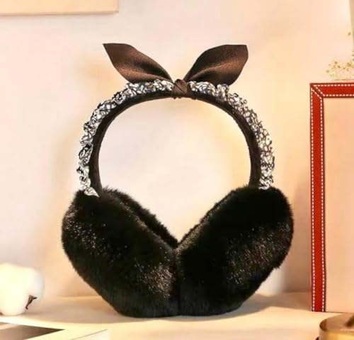 Generic - Luxury ear warmers with decorative bow, available in different colors, elegant design with decorative pattern,