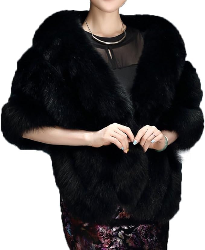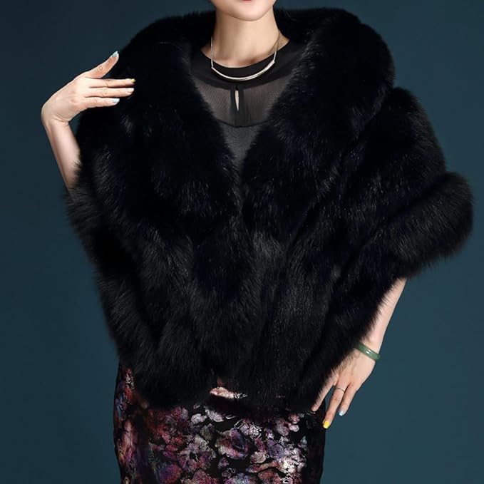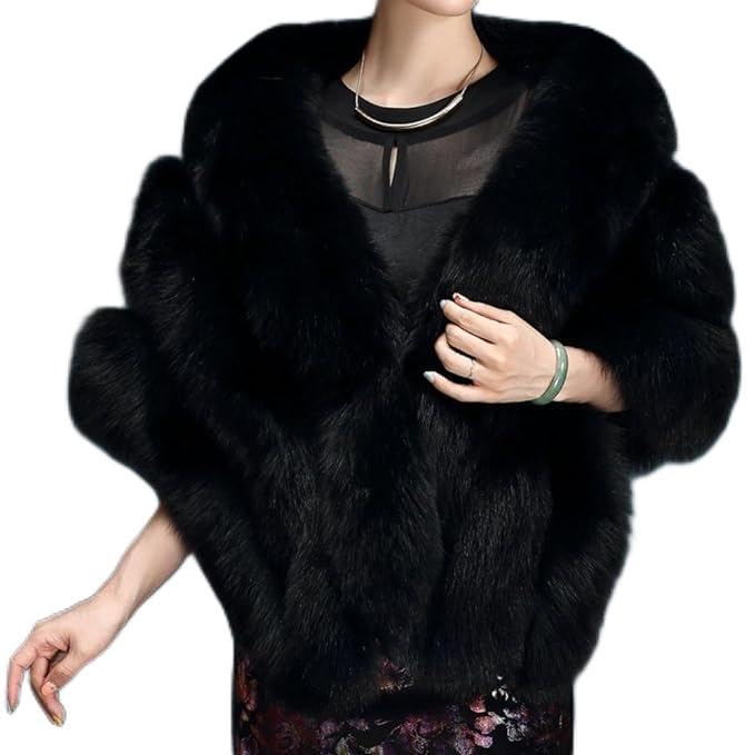 Generic - معطف فاخر من الفرو الصناعي للنساء، شال ملفوف مع فرو لحفلات الزفاف