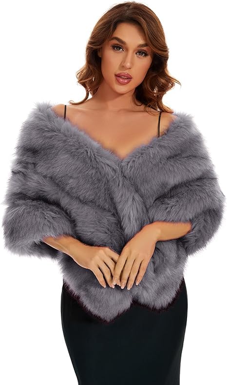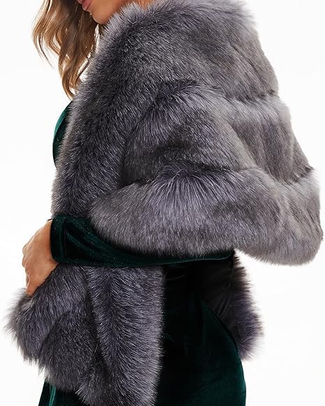Moro Moro 3 - Luxury Faux Fur Shawl, Grey Fur Coat