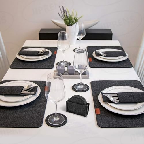 - PREMIUM HEAT-RESISTANT FELT: Made from high-quality thermal felt, each piece protects your surfaces from heat damage, scratches, and spills. The durable yet soft material maintains its shape, resists wear, and adds a sophisticated touch to your dining décor, ideal for hot dishes, pots, and beverages.