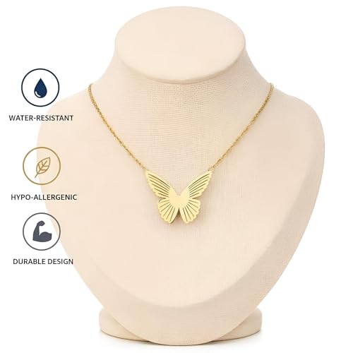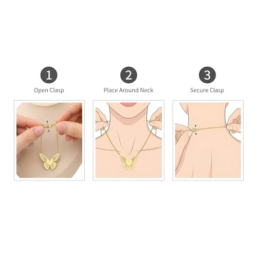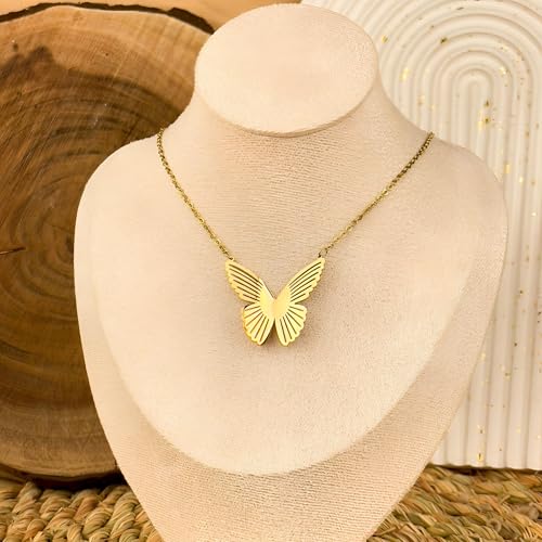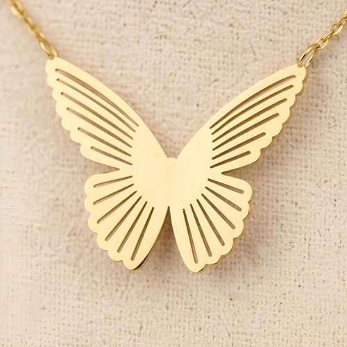 Generic - قلادة هدية فاخرة - قلادة فراشة مطلية بالذهب للنساء، مثالية لأعياد الميلاد أو الذكرى السنوية، تتضمن سلسلة رقيقة ومشبك آمن لأناقة لا تتأثر بمرور الزمن.